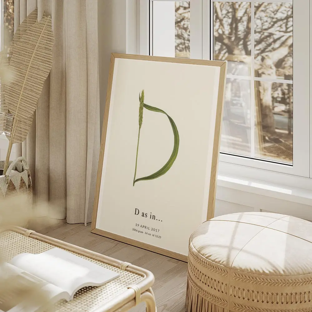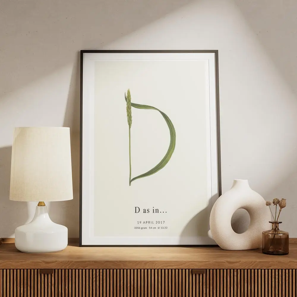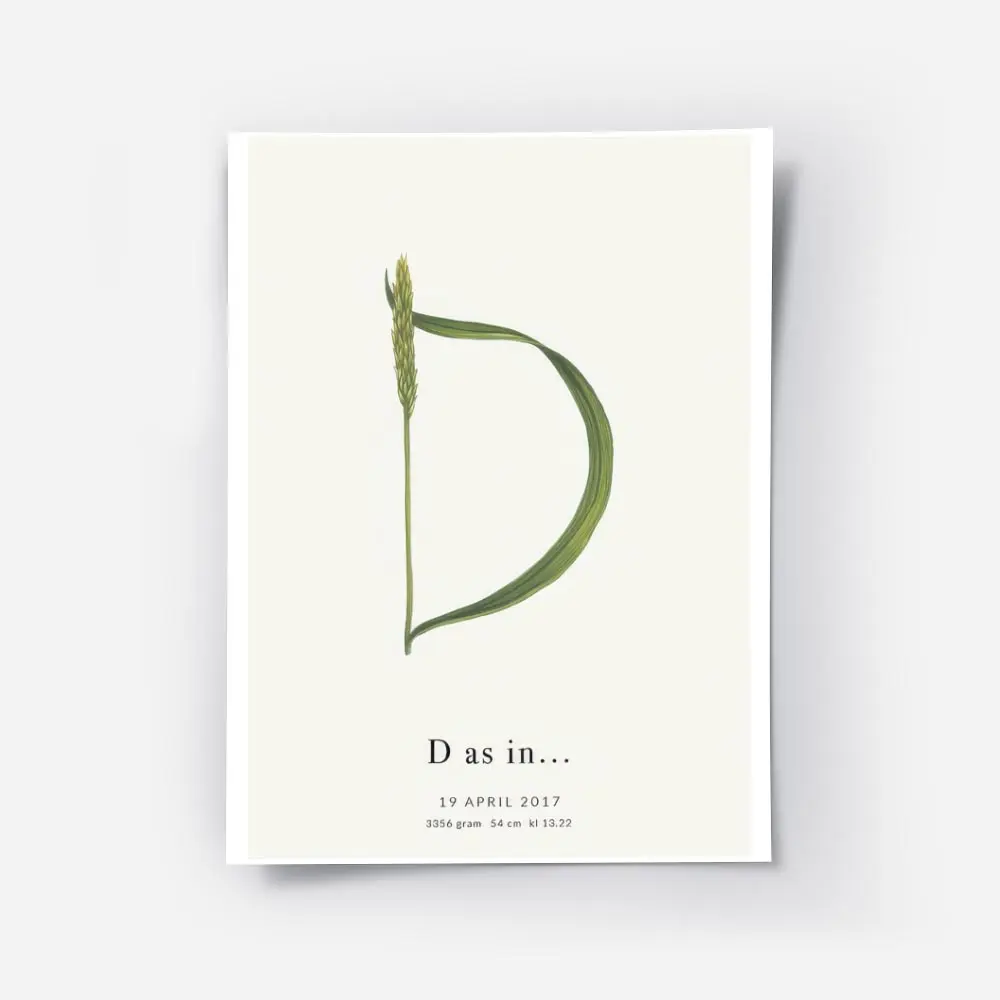 affiche botanique personnalisee avec une plante verte formant la lettre d et du .webp