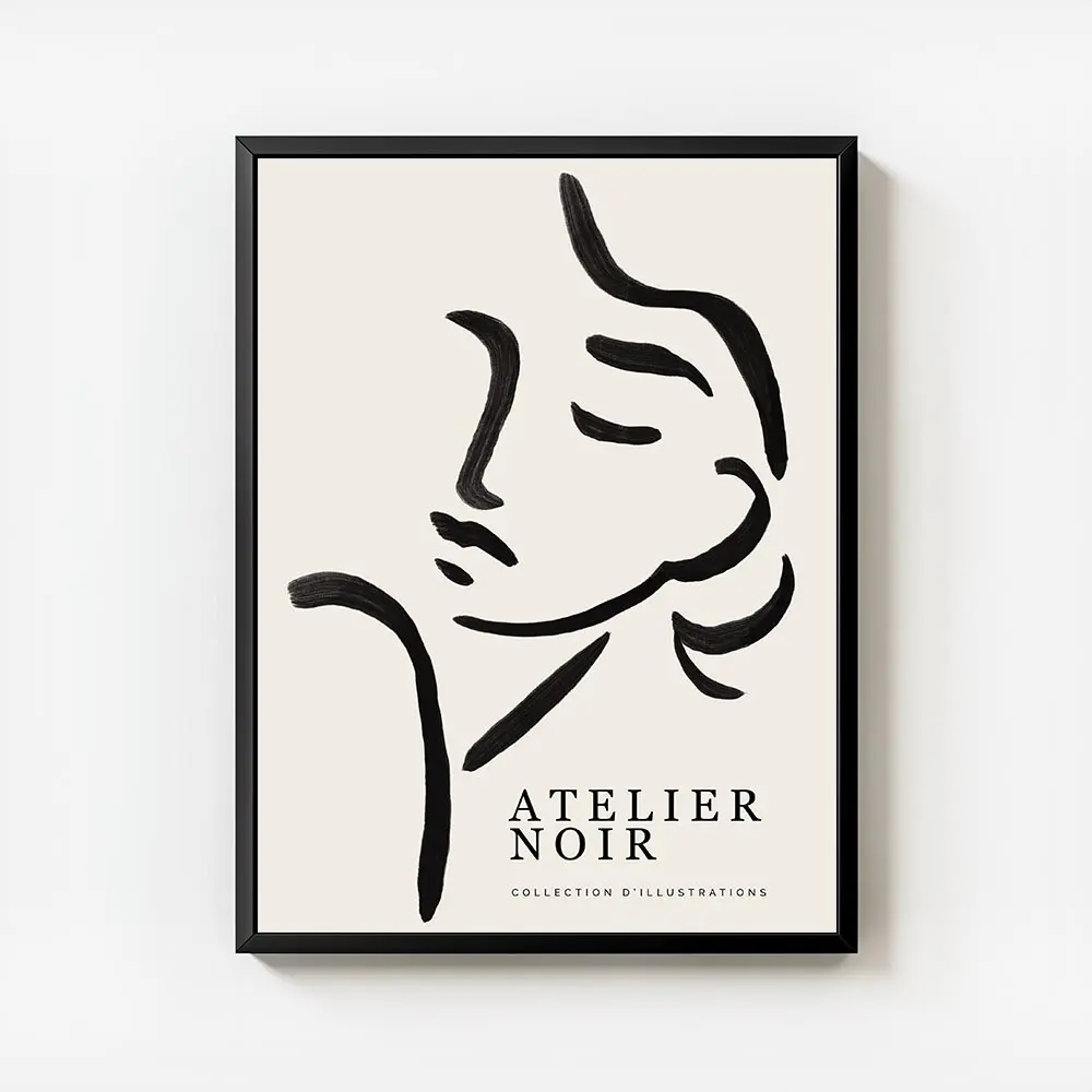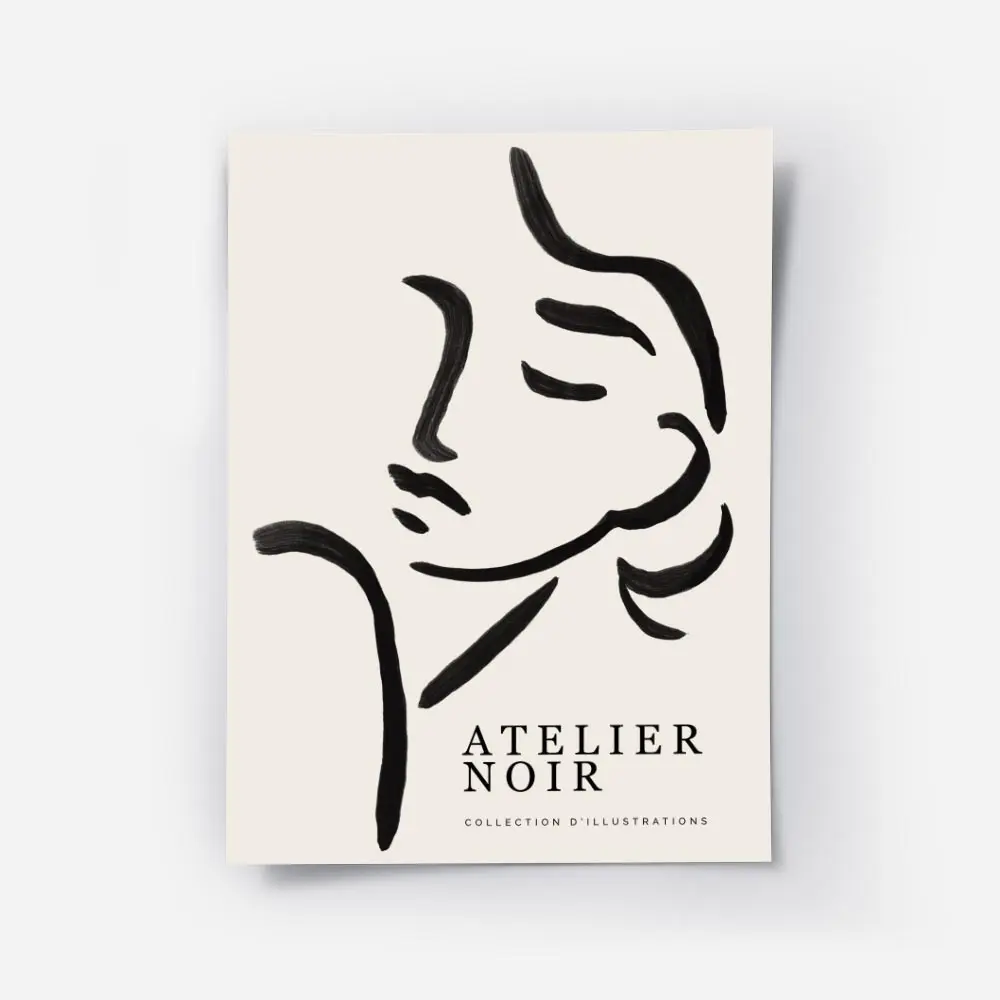 Ce poster s'accorde bien avec des murs clairs, un cadre fin noir ou bois clair, et quelques plantes vertes pour tempérer le contraste. Il fonctionne avec un style minimaliste, scandinave ou contemporain, et se marie bien avec des textiles naturels. Pour explorer des pièces similaires, on peut regarder nos sélections poster noir et blanc et dessins au trait.