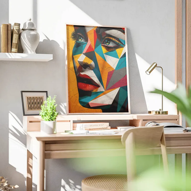 On est vraiment fans de ce Poster visage abstrait Picasso. En le voyant, on est tout de suite transporté dans un univers artistique incroyable, plein de couleurs et d'émotions. Ce qui nous frappe, c'est la manière dont les formes s'entrelacent, et comme par magie, un visage émerge. C'est à la fois énigmatique et captivant, on adore comment ça fait réfléchir !