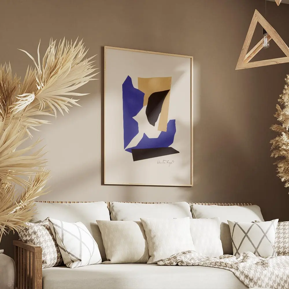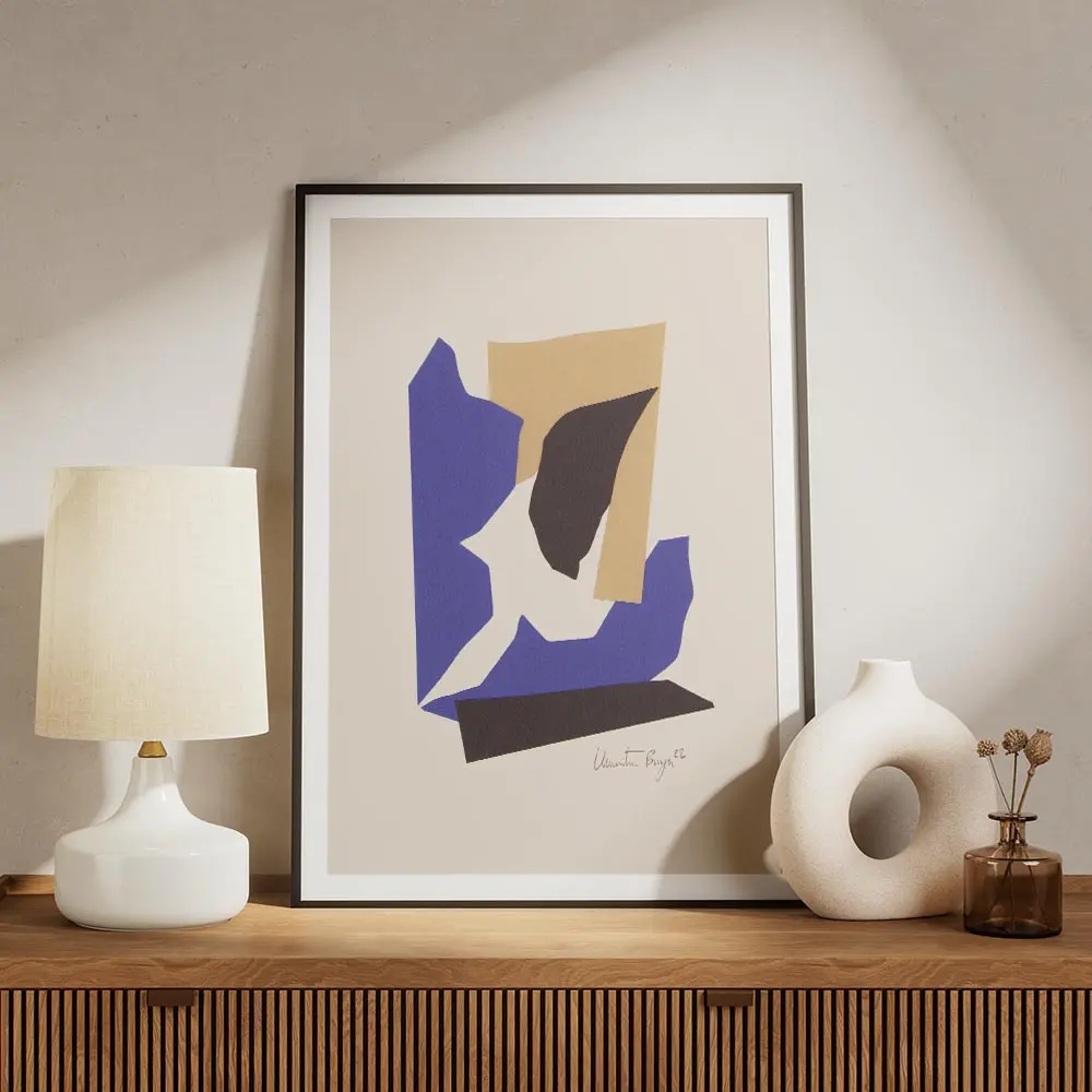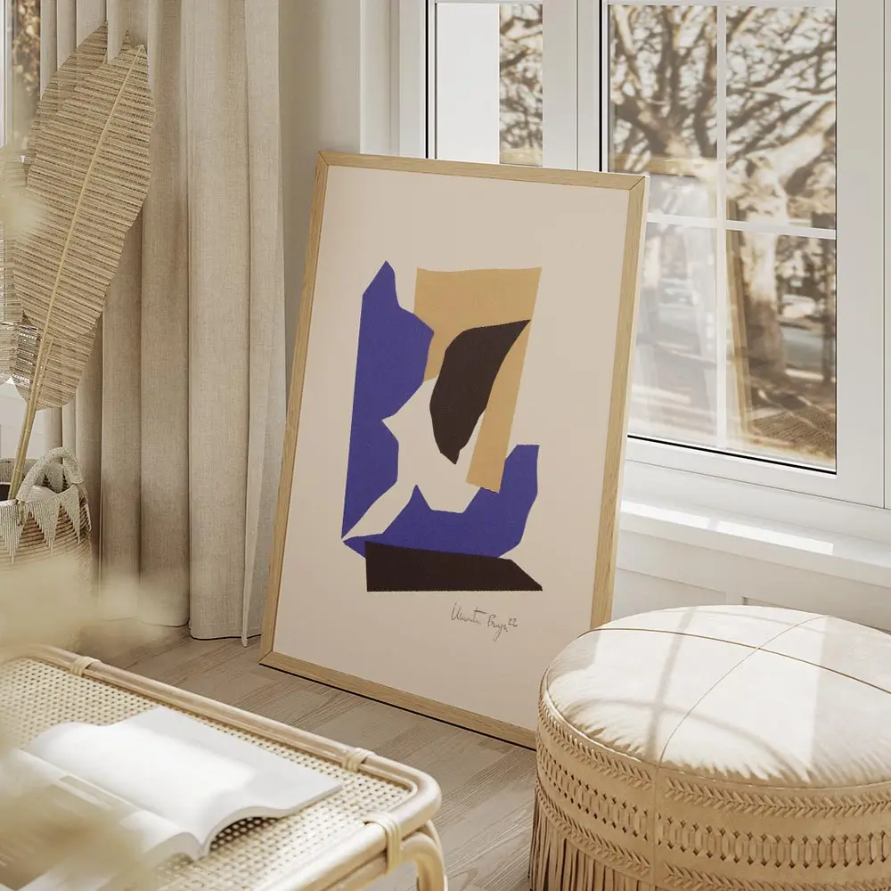 Ce poster marche sur un mur blanc, crème ou gris clair. On l'associe avec un cadre noir fin, des meubles en bois clair, des lampes métal noir pour jouer le contraste. On le trouve adapté à une déco minimaliste, scandinave ou industrielle. Pour trouver d'autres graphismes et compositions abstraites, découvrez nos sélections graphisme ou art abstrait.