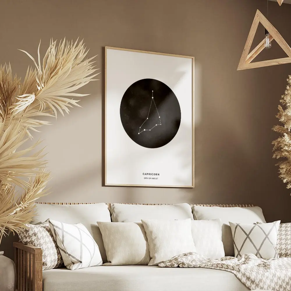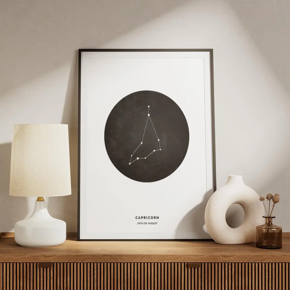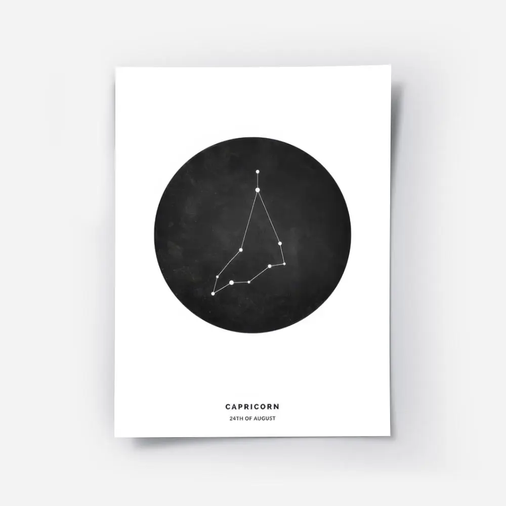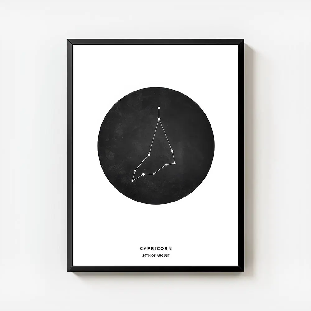 affiche capricorne personnalisee illustration du signe astrologique noir et blan.webp