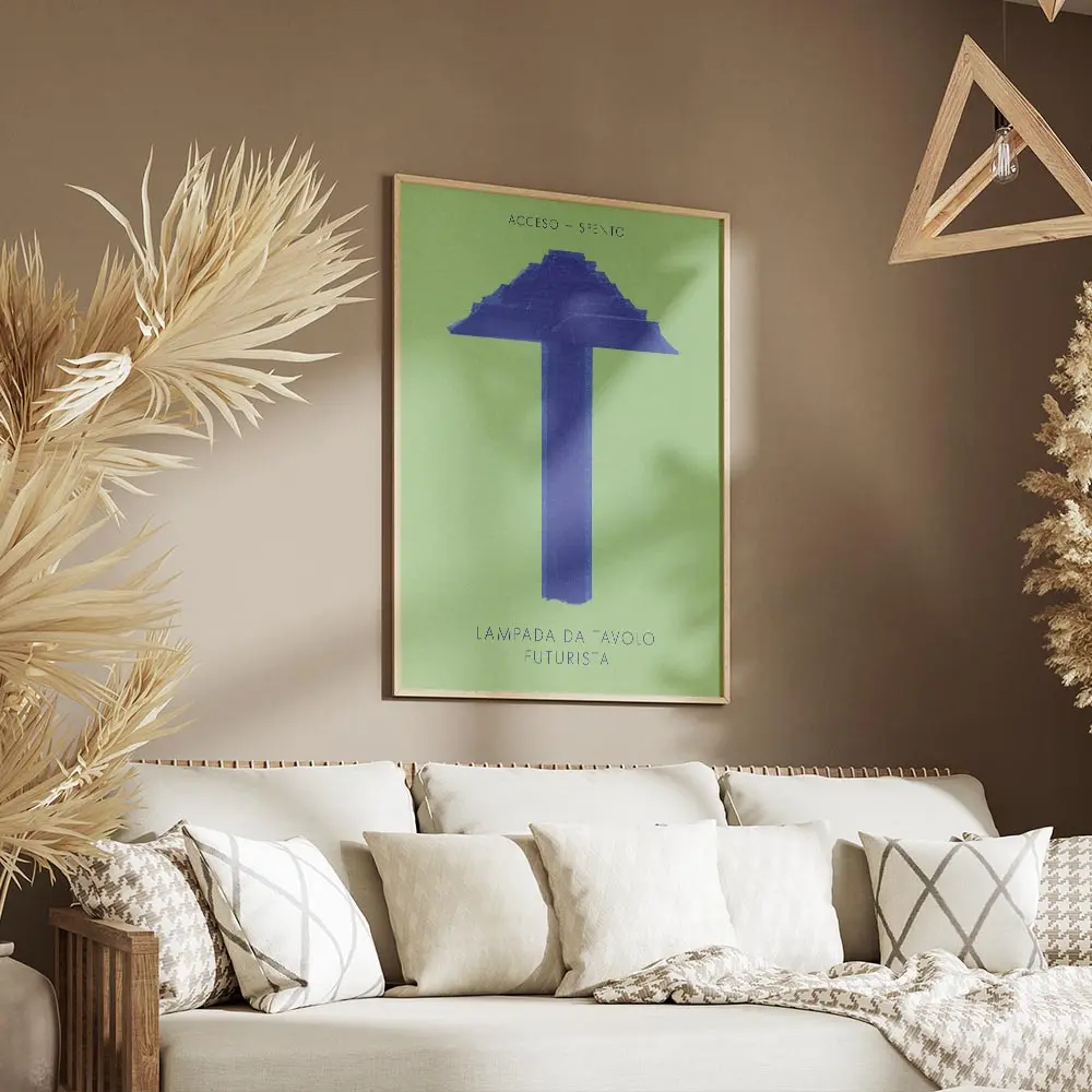 Affiche lampe futuriste bleue fond vert, une touche contemporaine