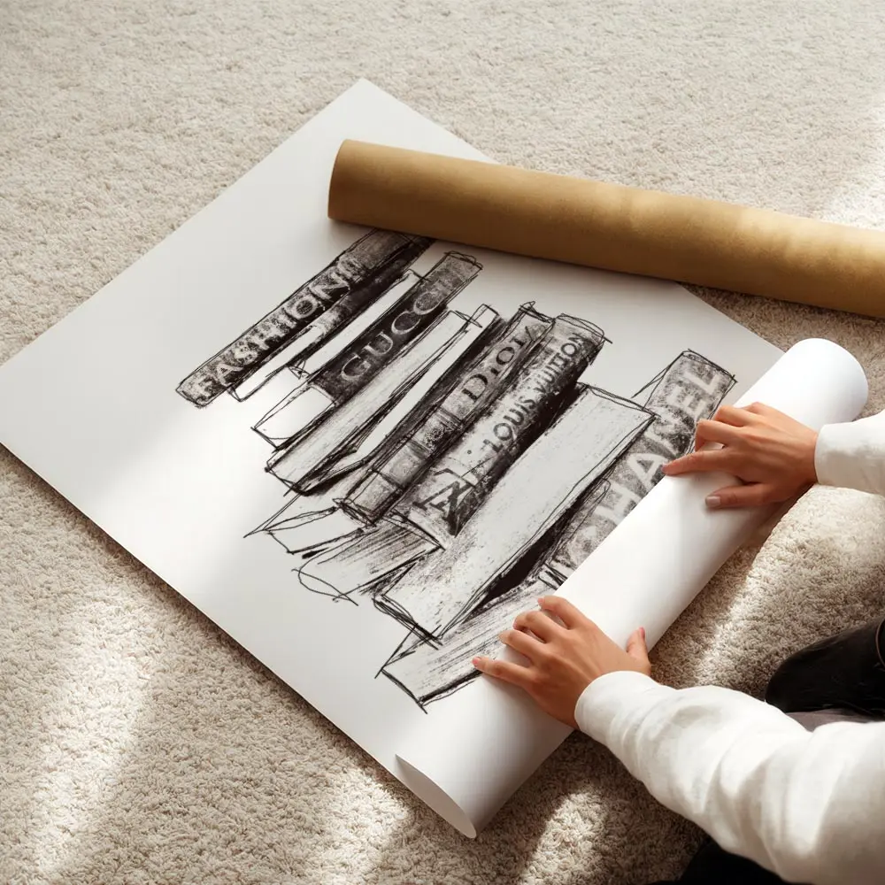 Sur un mur blanc ou beige, l’affiche apporte structure et élégance. Elle fonctionne bien au-dessus d’une étagère, près d’un coin lecture, avec des accessoires en bois et un cadre fin noir pour faire ressortir les tranches. Pour compléter, découvrez : sélection mode et collection d'affiches.
