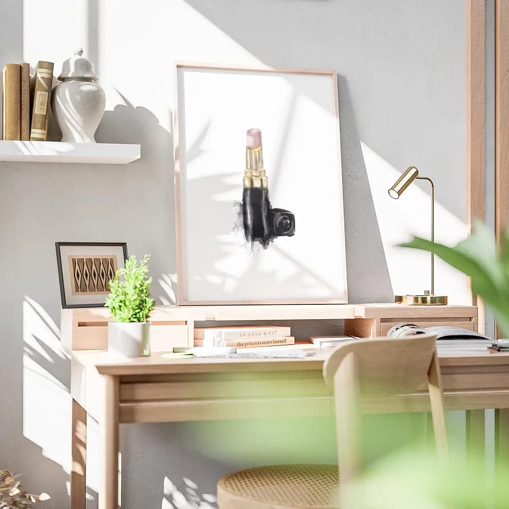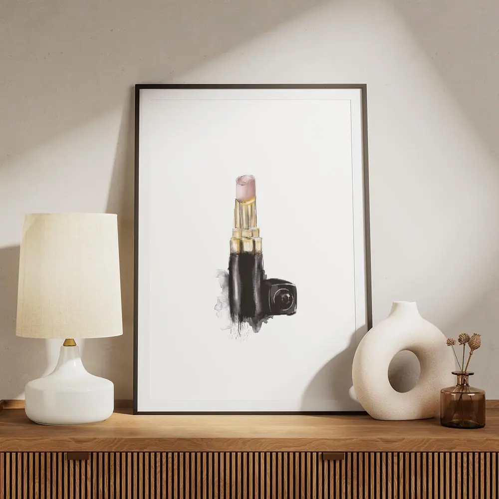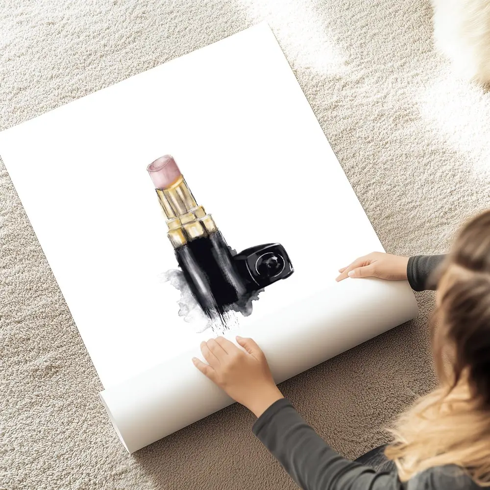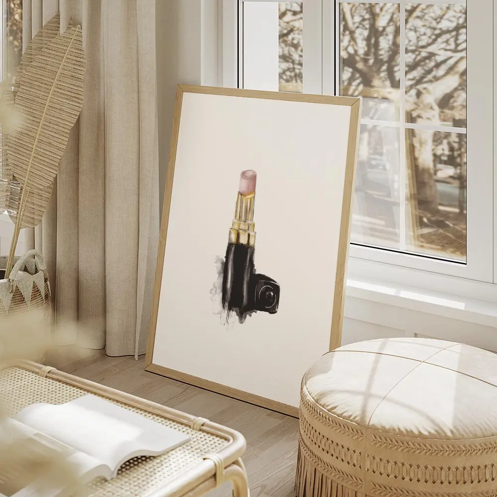 Sur un mur blanc ou crème, cette affiche fonctionne comme point focal élégant. On l'accroche au-dessus d'une coiffeuse, d'une petite étagère, ou près d'accessoires dorés pour reprendre les reflets. Elle se marie bien avec une déco mode et minimaliste, ou un coin beauté plus féminin. On aime l'allure raffinée, vraiment. Retrouvez des visuels similaires dans notre sélection mode ou parcourez nos affiches.