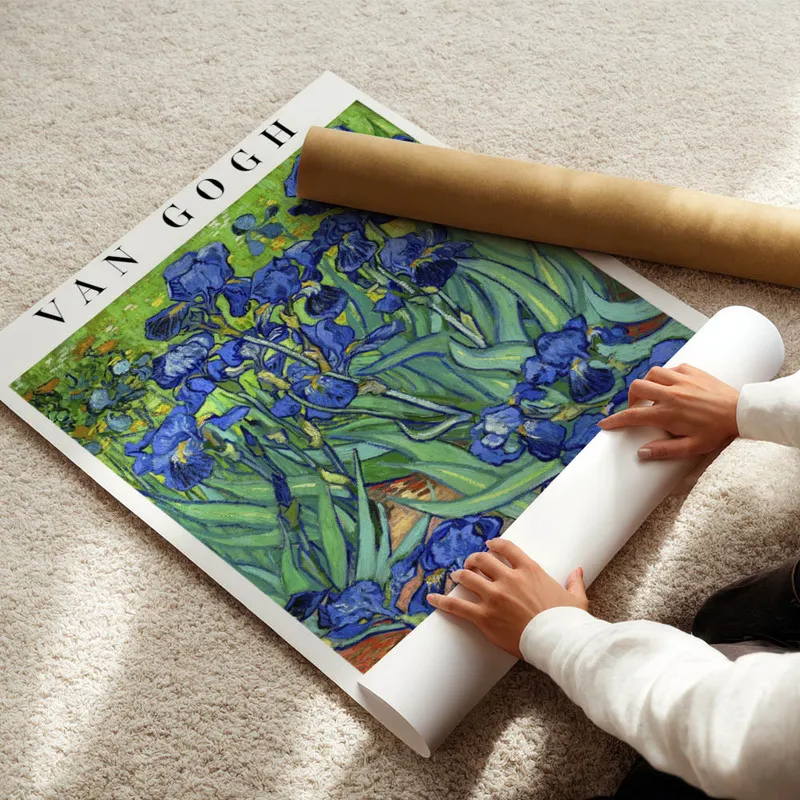 On est vraiment tombé sous le charme du Poster Van Gogh irises. En le regardant, on ressent tout de suite une fraîcheur incroyable. Ces belles fleurs, si vibrantes et pleines de vie, nous transportent dans le jardin d'un peintre. C'est presque comme si on pouvait sentir leur parfum à travers l'affiche, un vrai régal pour les yeux.