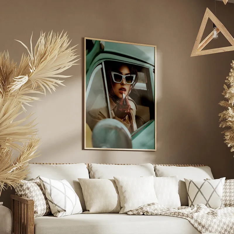 On peut facilement l'imaginer dans un salon chic ou même dans une chambre. Ce Poster femme élégante voiture pourrait se marier à merveille avec d'autres affiches sur le thème de la mode ou de la photographie. Pourquoi ne pas jeter un œil par ici pour d'autres posters de mode ou même vers les portraits photographiques ? Ça pourrait vraiment créer une belle harmonie !