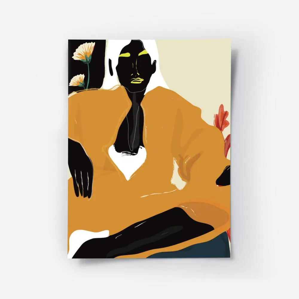 Affiche femme robe orange style figuratif, silhouette et couleur chaleureuse