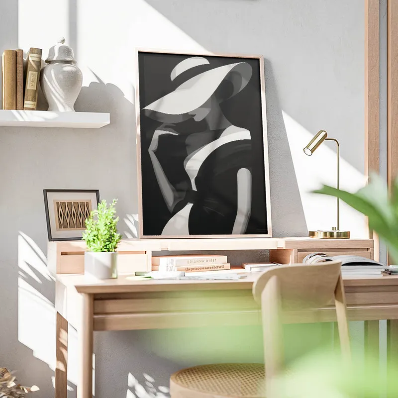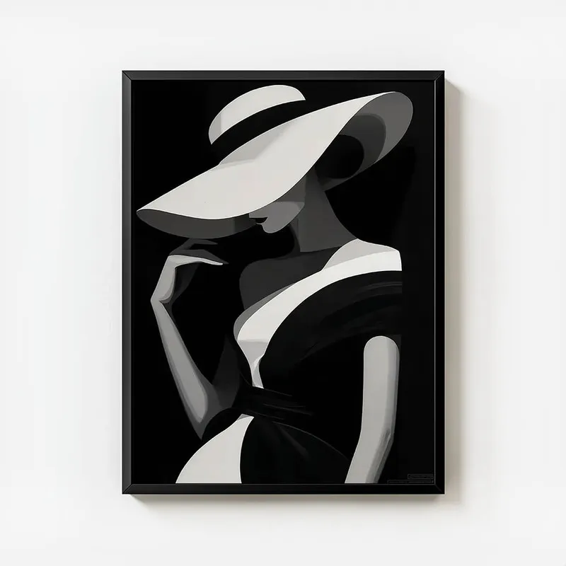 On pourrait même l'associer avec d'autres affiches noir et blanc ou des illustrations graphiques pour un effet super harmonieux. Allez jeter un œil aux autres posters noir et blanc. Ça pourrait vraiment créer une atmosphère unique chez vous. Ce Poster femme chapeau noir et blanc, il mérite sa place dans votre déco, c'est certain. On valide à 100% !