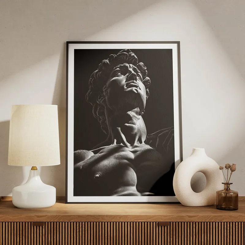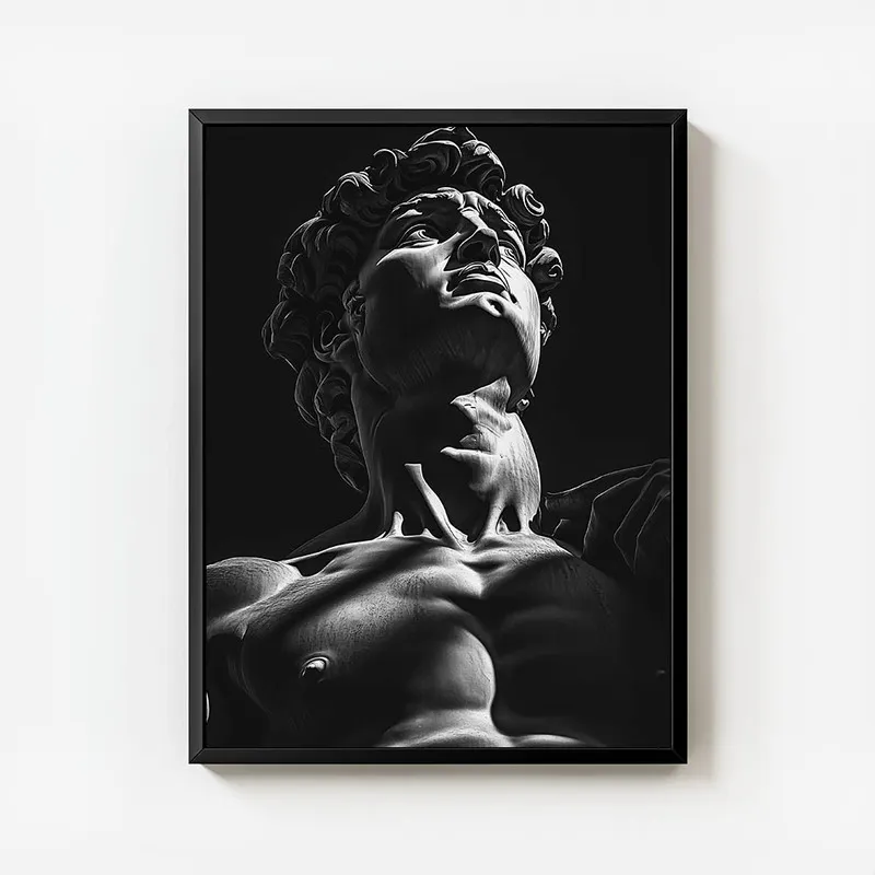 On apprécie le choix du noir et blanc, ça lui donne un côté intemporel, comme un écho de l'histoire. On dirait que David nous parle, nous rappelle que la beauté et la lutte sont souvent intimement liées. Ce petit bijou de décoration peut vraiment apporter une ambiance unique à n'importe quel mur.