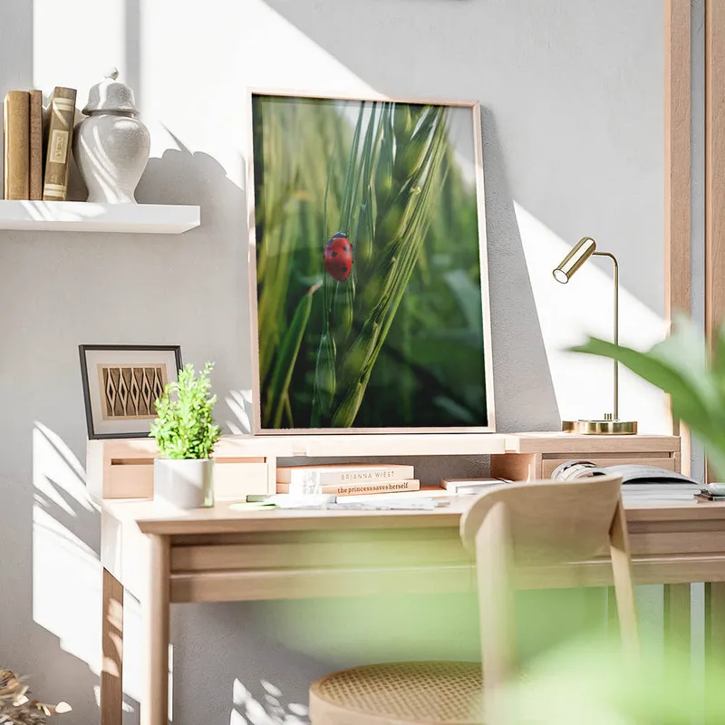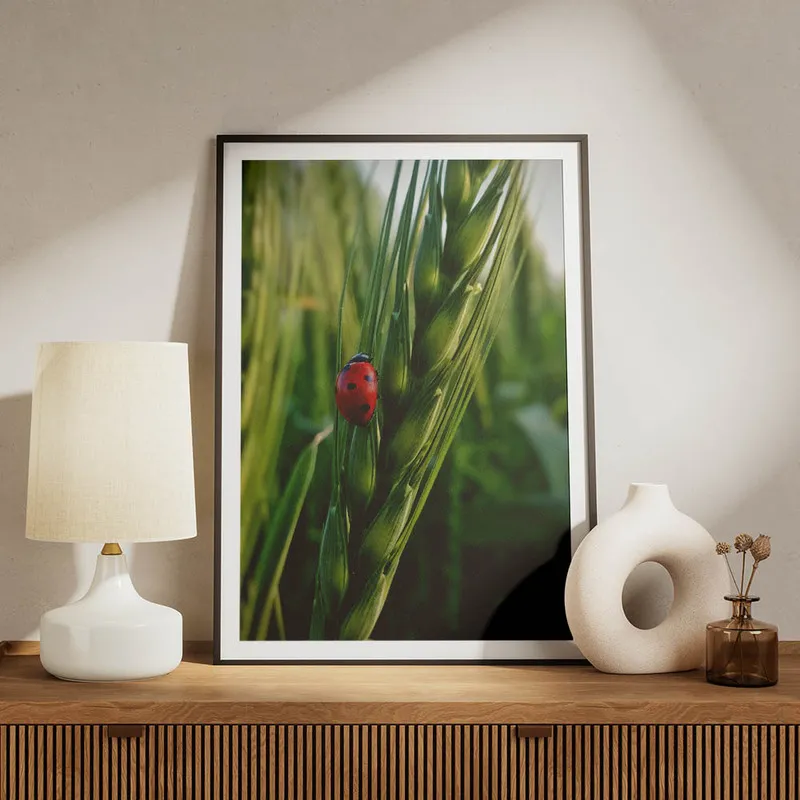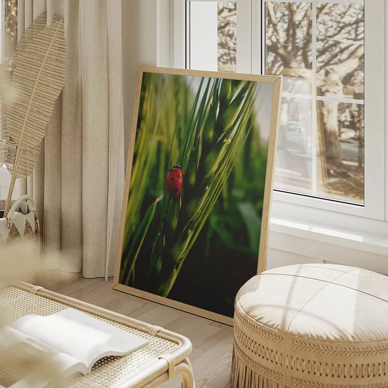 On craque complètement pour ce Poster coccinelle rouge ! En le voyant, on ressent presque une petite brise printanière, c'est fou comme une petite coccinelle peut apporter tant de douceur. Ses couleurs vives, ce rouge éclatant, c'est vraiment un petit bonheur pour les yeux. On dirait qu'elle est prête à prendre son envol, posée là sur une feuille.