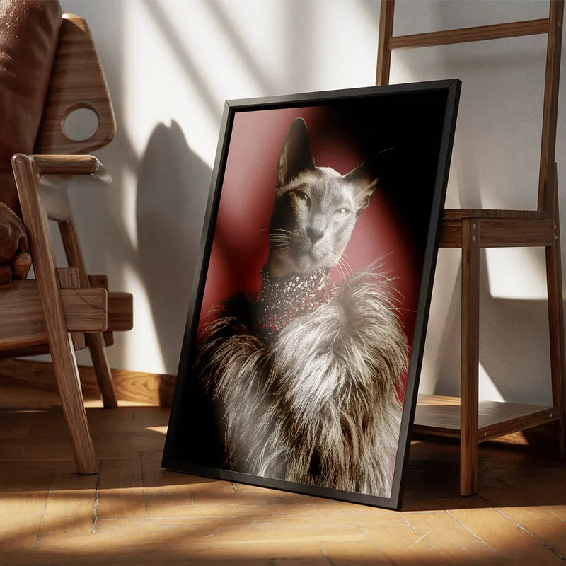 On est complètement sous le charme du Poster chat élégant mode. Cette affiche, elle dégage un petit truc vraiment spécial. On dirait que ce chat, avec son look soigné, sort tout droit d'un défilé tendance, prêt à nous impressionner. C'est fou comme une simple image peut évoquer autant d'attitudes et de personnalité. On ressent une certaine sophistication, mais aussi une légèreté, que c'est agréable.