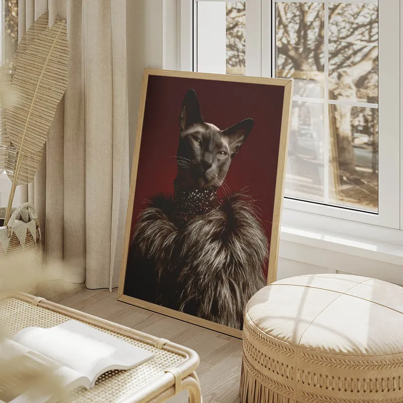 Les couleurs douces et les détails raffinés apportent une atmosphère à la fois chic et apaisante. C'est un équilibre parfait entre le glamour et le détendu. Ce poster pourrait presque nous faire penser à un moment de pause, une ambiance cosy dans notre salon ou même dans une chambre. Franchement, le chat semble nous inviter à prendre le temps de rêver.