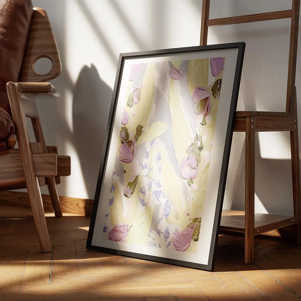Sur un mur blanc ou beige, les violets ressortent avec élégance. On conseille des cadres en bois clair, des coussins ivoire et des plantes vertes pour créer un contraste frais. Ce poster s’accorde bien avec un style scandinave minimaliste ou une déco bohème légère. Pour compléter l’univers floral, retrouvez des posters fleurs ou explorez notre rubrique botanique.