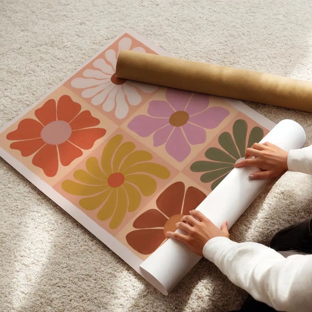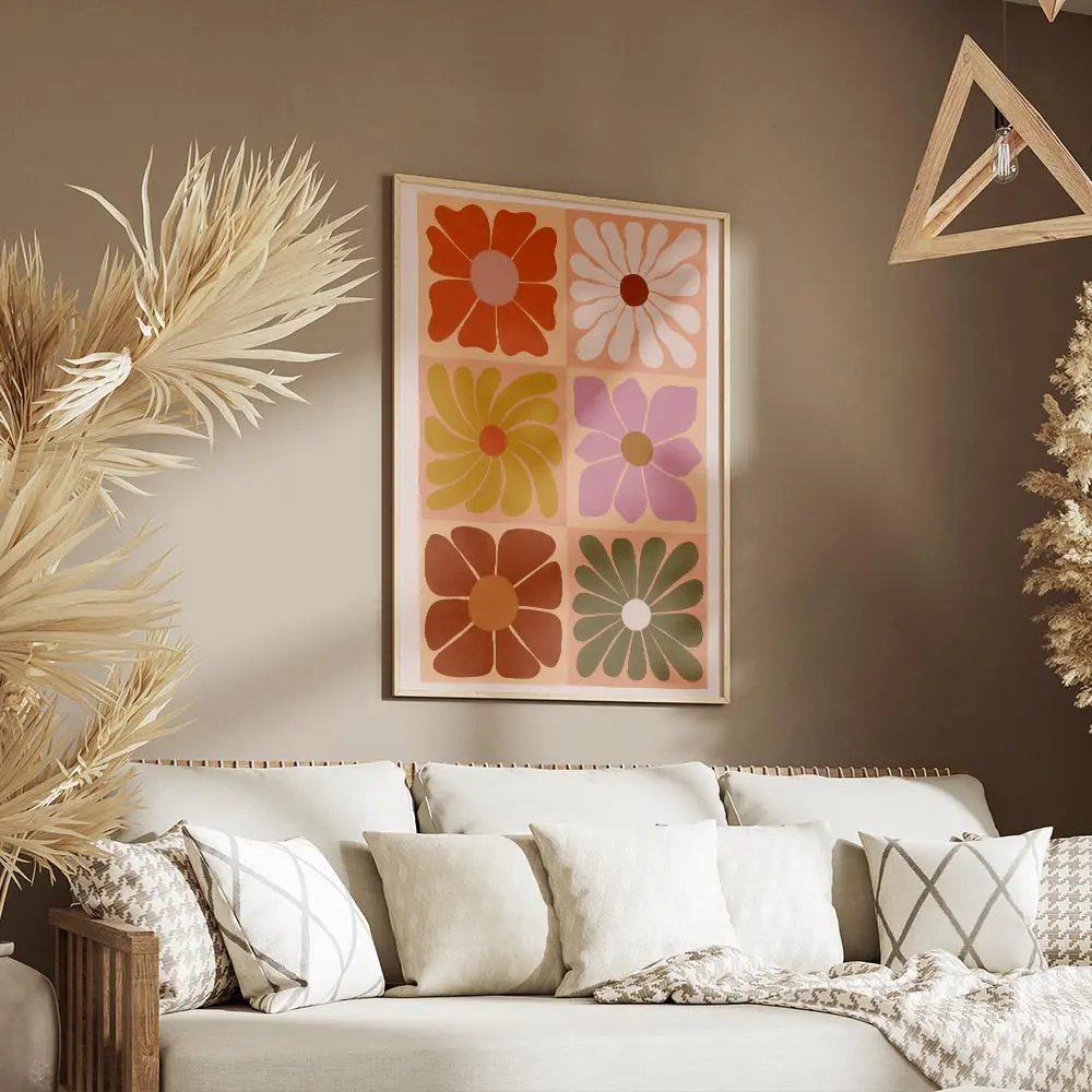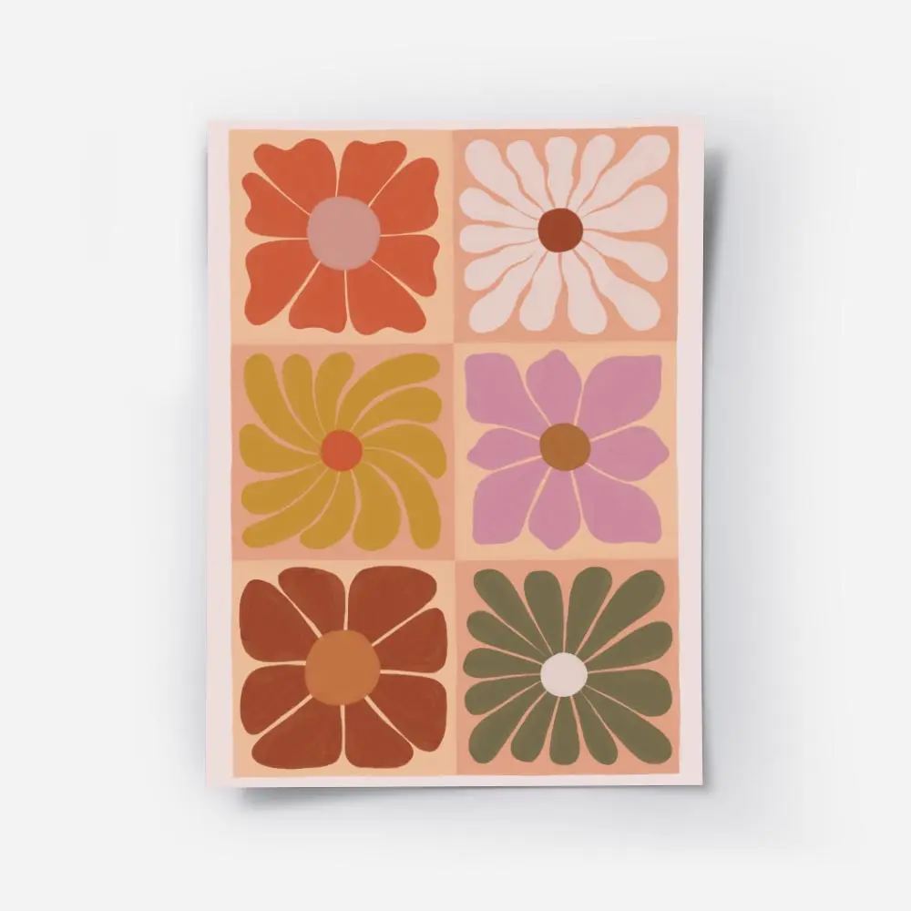 Affiche fleurs graphiques carrées colorées, un motif moderne et joyeux
