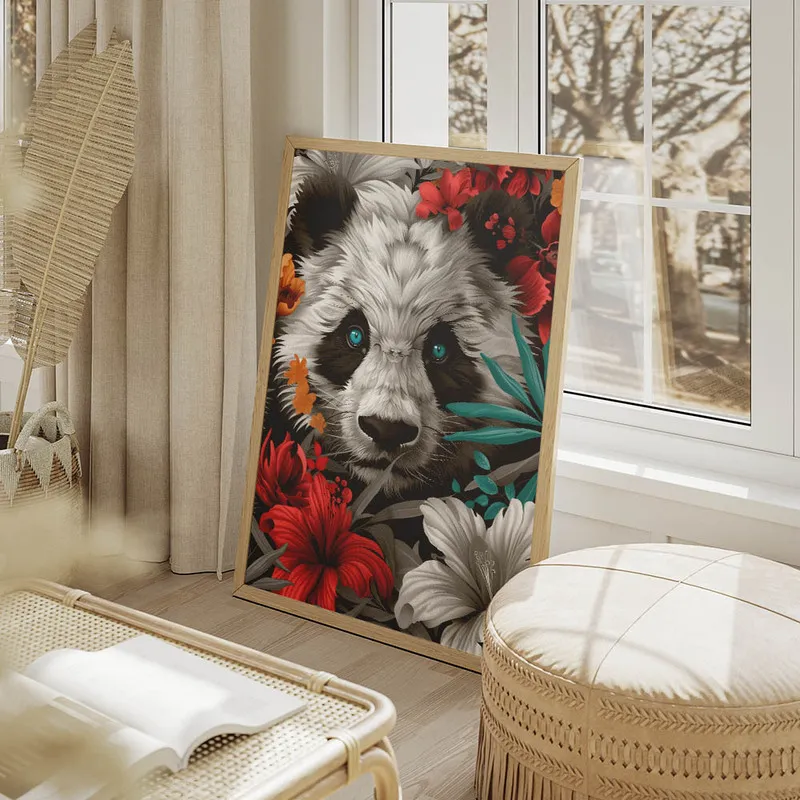 Alors là, on est tombé sous le charme du Poster tête de panda avec fleurs. En le voyant, on a cette petite étincelle dans les yeux. Ce panda, il dégage une douceur incroyable, vous ne trouvez pas ? Avec toutes ces fleurs qui l'entourent, c'est comme une rencontre entre l'innocence et la nature. On adore.