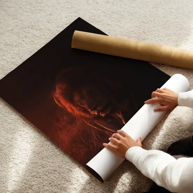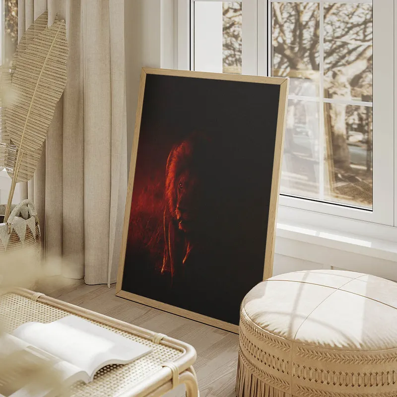 Ce Poster lion sombre apporte une vraie personnalité à n'importe quelle pièce. Imaginons-le dans un salon, ou pourquoi pas dans une chambre, ça donnerait un côté apaisant tout en étant captivant. En plus, il irait super bien avec d'autres affiches sur le thème des animaux, comme un Poster loup ou encore le Poster éléphant pour créer une ambiance pleine de caractère.
