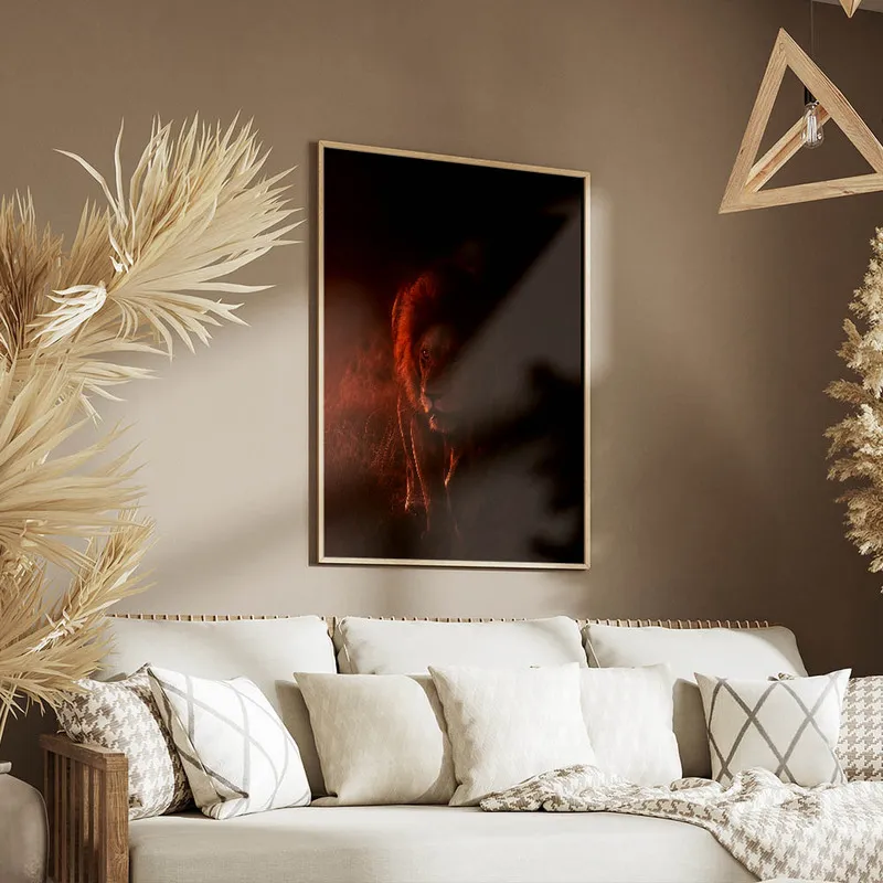 On ne peut pas s'empêcher d'admirer ce Poster lion sombre. En le voyant, on ressent tout de suite une atmosphère profonde et légèrement intrigante. Ce lion, majestueux et puissant, nous captive avec son regard intense. Il a une présence qui domine et occupe l'espace tout en restant élégant.