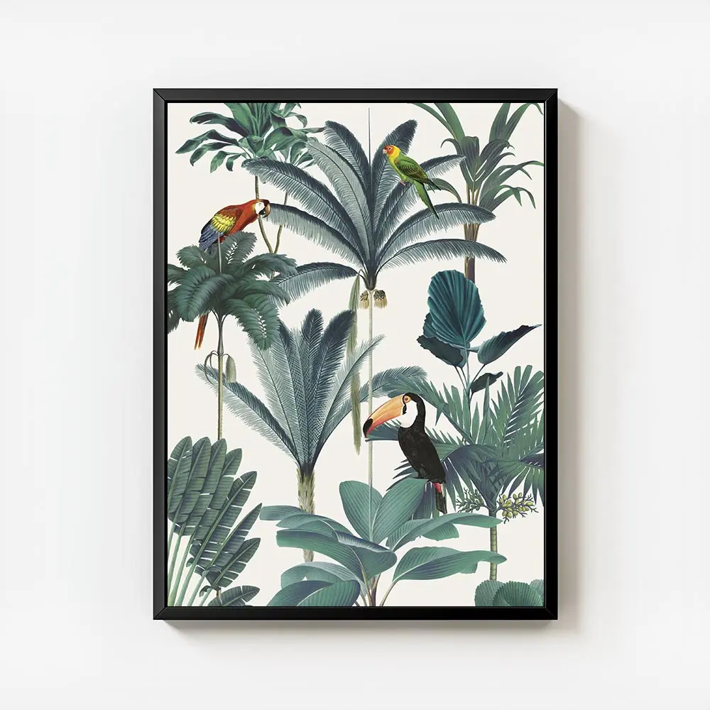 Affiche perroquets et toucan jungle luxuriante