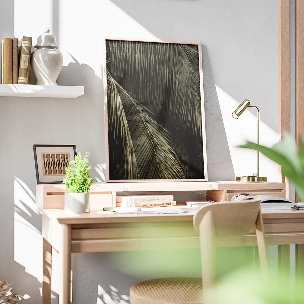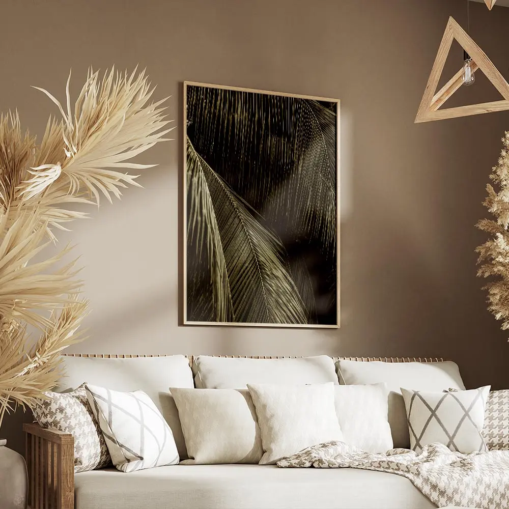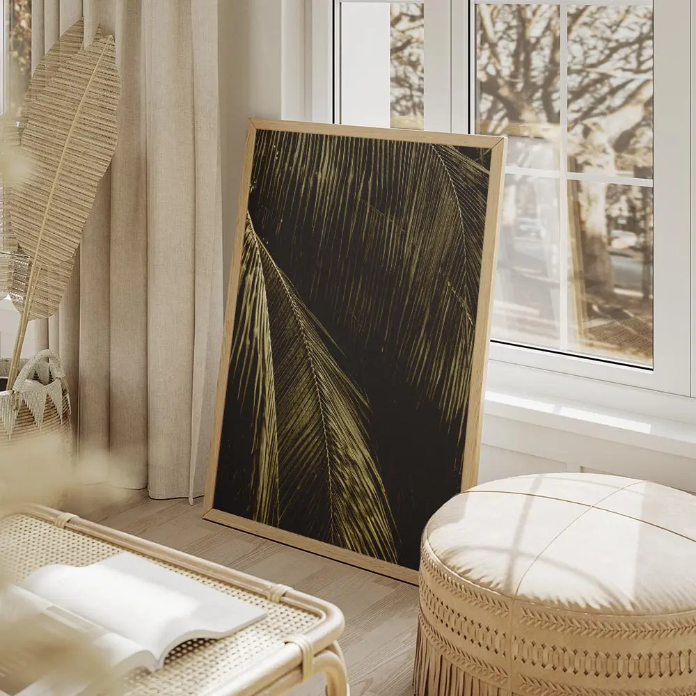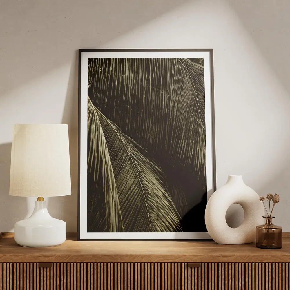Affiche feuilles de palmier sombres lumière, contraste et calme
