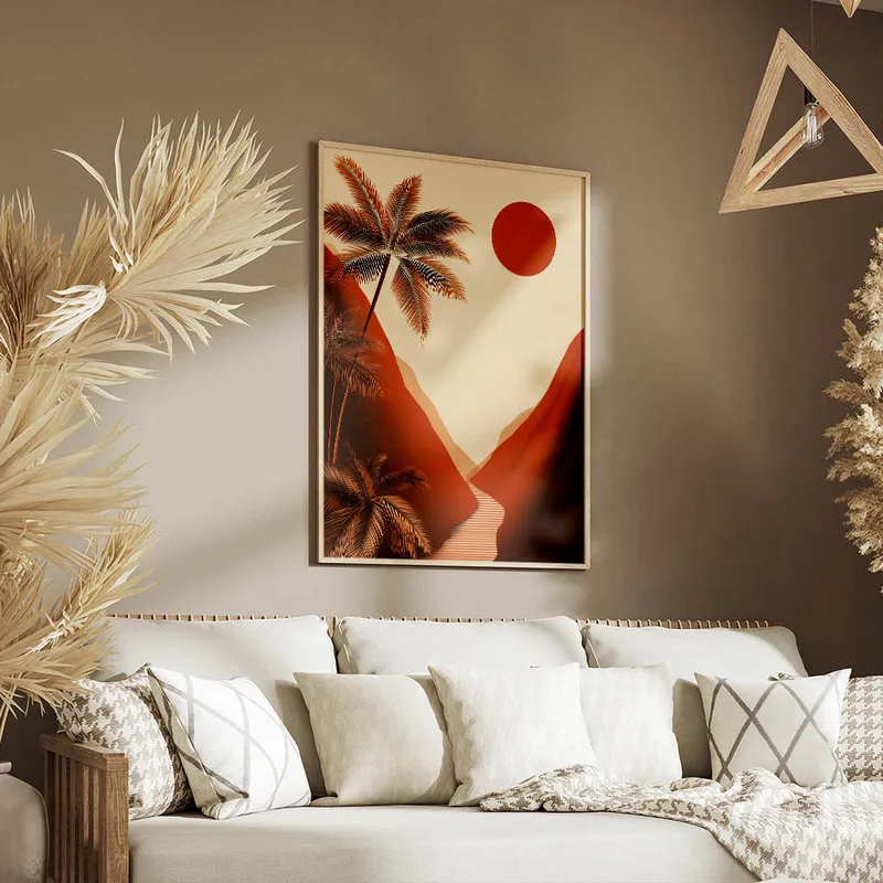 Ce Poster paysage rétro palmiers coucher de soleil mérite sa place chez vous, pour apporter une touche de sérénité au quotidien. Après tout, on a tous besoin d'un petit coin de paradis, n'est-ce pas ?