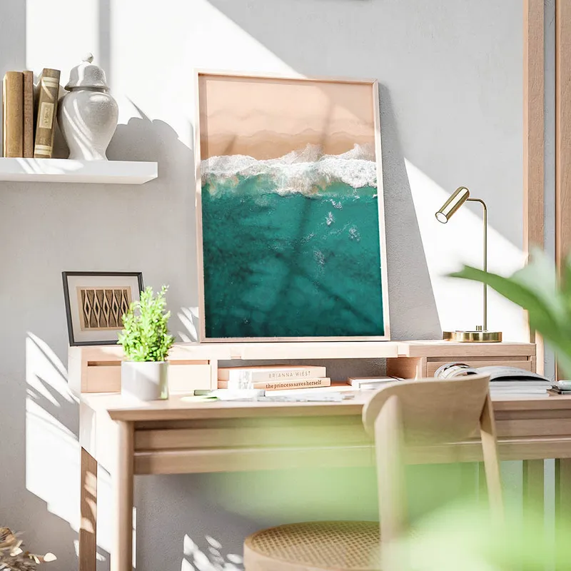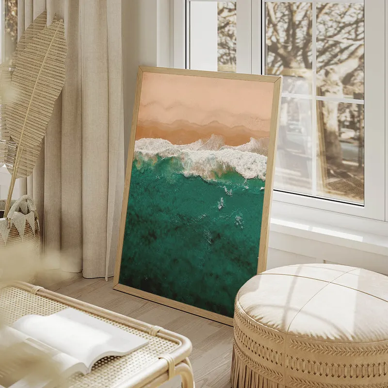 On verrait super bien ce Poster vue aérienne de plage dans un salon, ou dans une chambre, juste histoire de rêver un peu chaque jour. Ça donnerait un côté voyage à la déco, un petit clin d'œil à l'évasion. Si vous voulez aller encore plus loin dans ce thème, pourquoi pas l'associer avec d'autres affiches de plages ? Il y a de chouettes posters de plages qui pourraient compléter ce tableau. Et puis, vous pourriez aussi jeter un œil aux paysages naturels qui apporteraient une touche sauvage à votre déco.