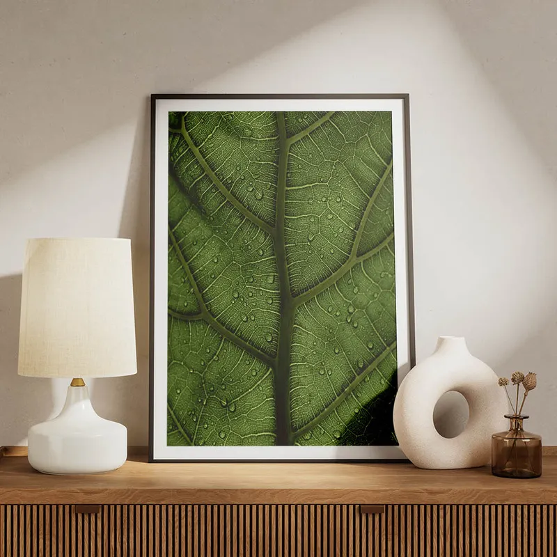 On ne peut qu'être émerveillé par le Poster feuille verte. Dès qu'on le regarde, on ressent cette fraîcheur, cette vitalité qui donne envie de se plonger dans un jardin luxuriant. La couleur verte, elle est apaisante, presque essentielle. Ça fait un bien fou de voir ça dans nos intérieurs ! On dirait qu'on amène un petit bout de nature chez soi.