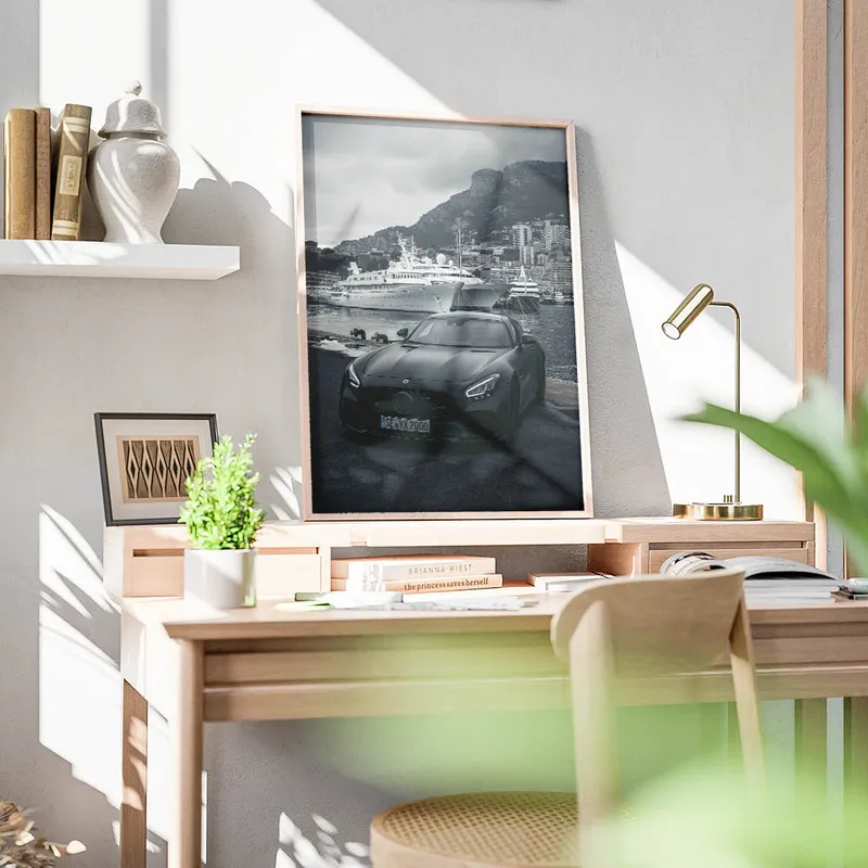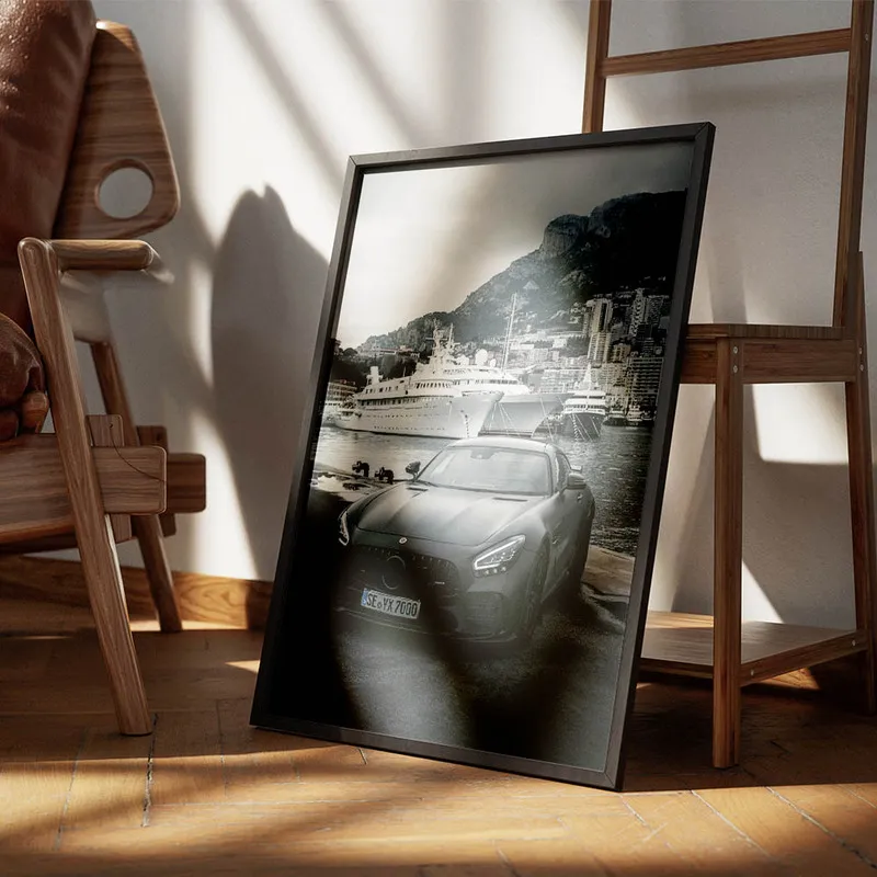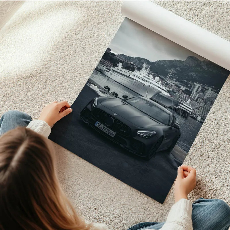 On imagine très bien ce Poster Mercedes AMG GT noir dans un salon, dans un bureau ou même dans un garage transformé en pièce chic. Pour ceux qui sont fascinés par l'automobile, pourquoi ne pas l'associer à d'autres affiches sur le thème des voitures ou de la vitesse ? Une petite galerie autour de la passion automobile, ça peut vraiment créer une ambiance sympa. Jetez un œil aux affiches d'art, ça pourrait apporter une touche dynamique à votre déco.