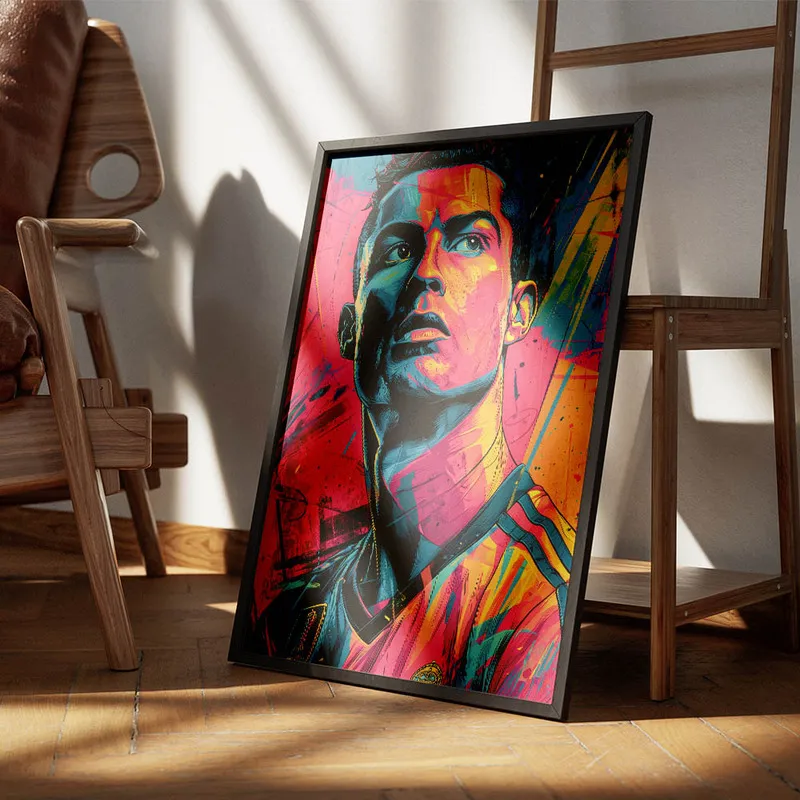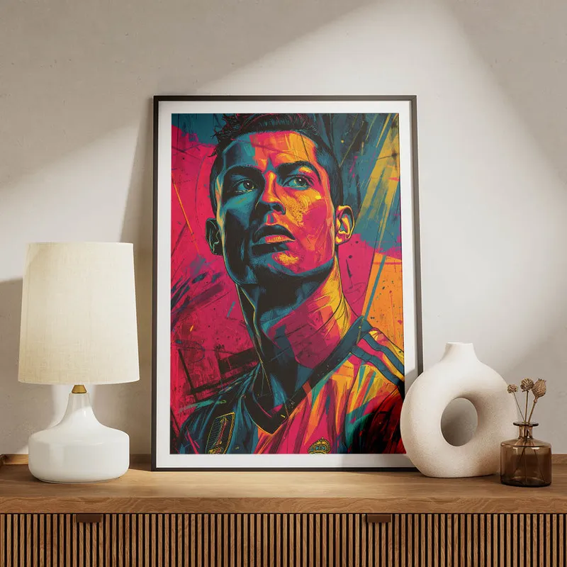 On doit vous dire qu'on est complètement fan du Poster Ronaldo street art. Dès qu'on le voit, ça nous transporte ! Ce mélange explosif de couleurs et de formes donne vraiment envie de vibrer avec ce grand sportif. On sent la passion, l'intensité des matchs à travers ce design hyper dynamique. On dirait que Ronaldo est là, prêt à se lancer sur le terrain.