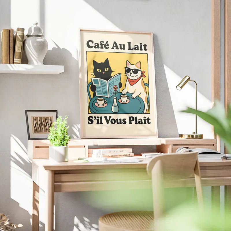 Alors, si vous cherchez à mettre un peu de douceur dans votre intérieur, le Poster café avec chats est un vrai coup de cœur. On ressent tout de suite l'envie de s'installer confortablement et de profiter de petits moments de bonheur.