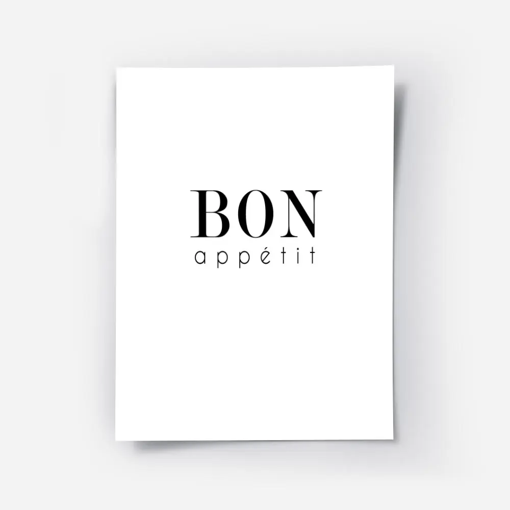 Cette Affiche typographie Bon Appétit joue la carte du contraste et de la lisibilité. Le texte noir sur fond blanc attire le regard. Le lettrage se lit en grand, centré sur la page, l’accent est bien présent. On sent un côté net, propre, qui va droit au but.