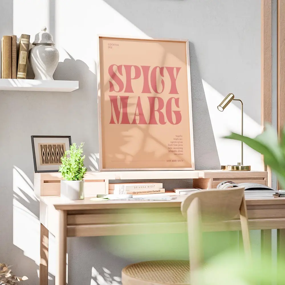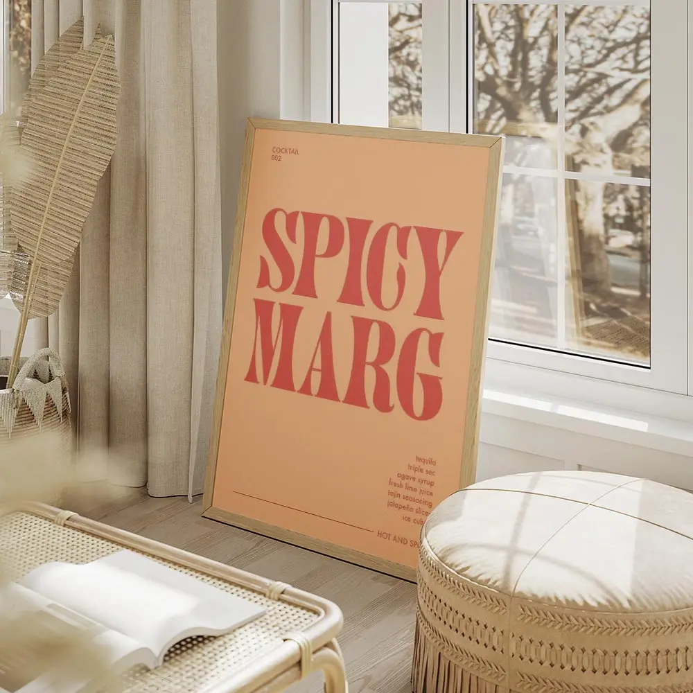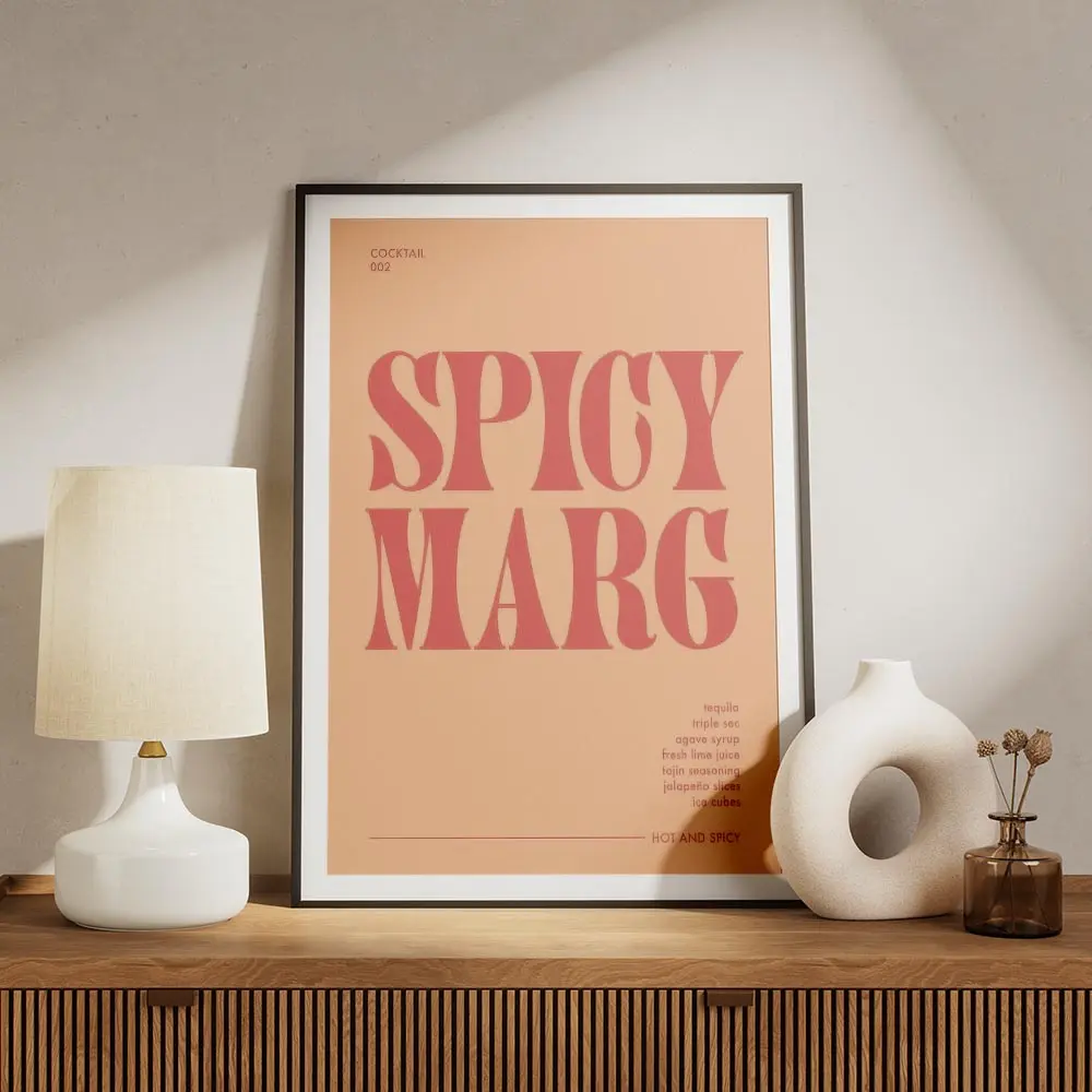 Sur un mur clair, les couleurs ressortent immédiatement. On conseille un cadre bois clair, des coussins terracotta et une plante verte pour tempérer l’intensité. Idéal pour une cuisine, un bar à la maison ou un coin repas. Pour compléter le thème, explore notre collection vins et cocktails ou nos affiches typographiques.