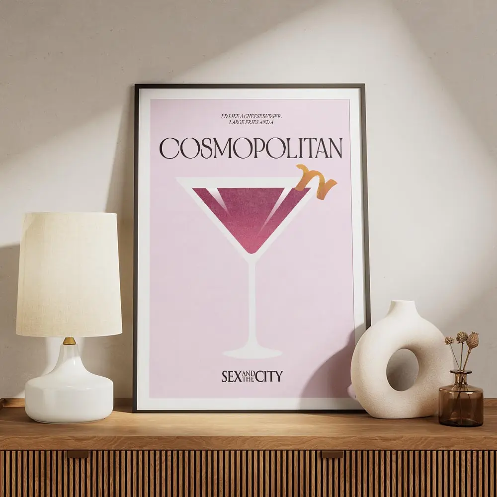 Sur un mur blanc ou en bois clair, l'affiche apporte une touche féminine et élégante. Elle fonctionne bien dans une cuisine, un coin bar ou une salle à manger. On peut l'associer à des objets dorés, des verres à pied, des coussins neutres. Pour compléter, on peut découvrir nos posters vins et cocktails ou parcourir notre sélection de posters et affiches.