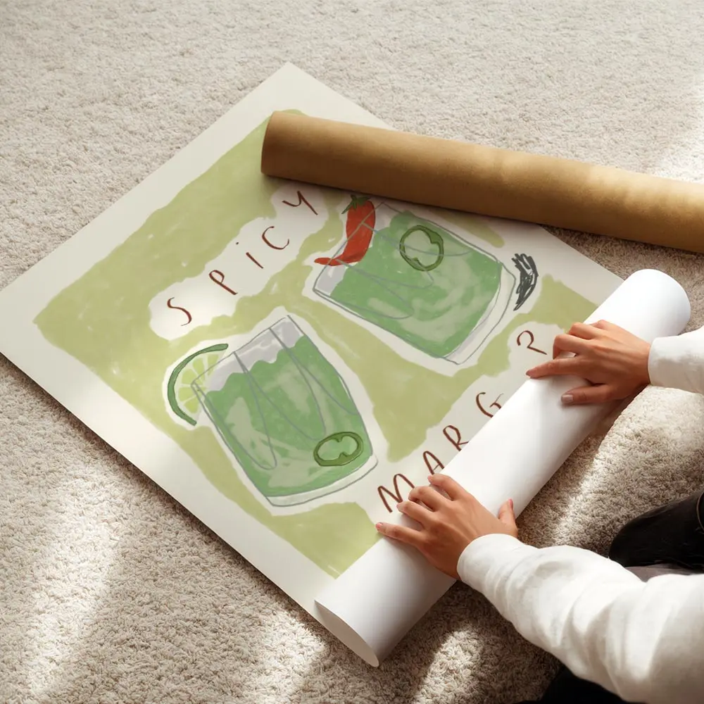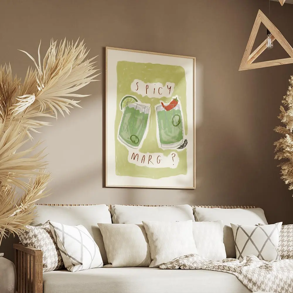 Ce poster fonctionne très bien dans une cuisine, un coin bar ou une salle à manger conviviale. On l’associe avec des tons bois clair, des accessoires en cuivre ou des plantes vertes pour renforcer le côté frais. Sur un mur blanc ou crème, la couleur verte ressort fortement. Pour aller plus loin, découvrez nos sélections de posters vins et cocktails ou parcourez nos posters et affiches.