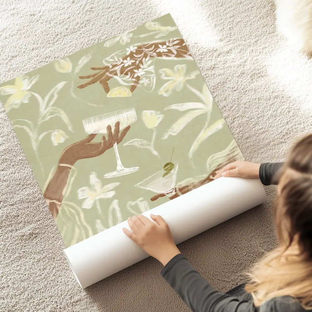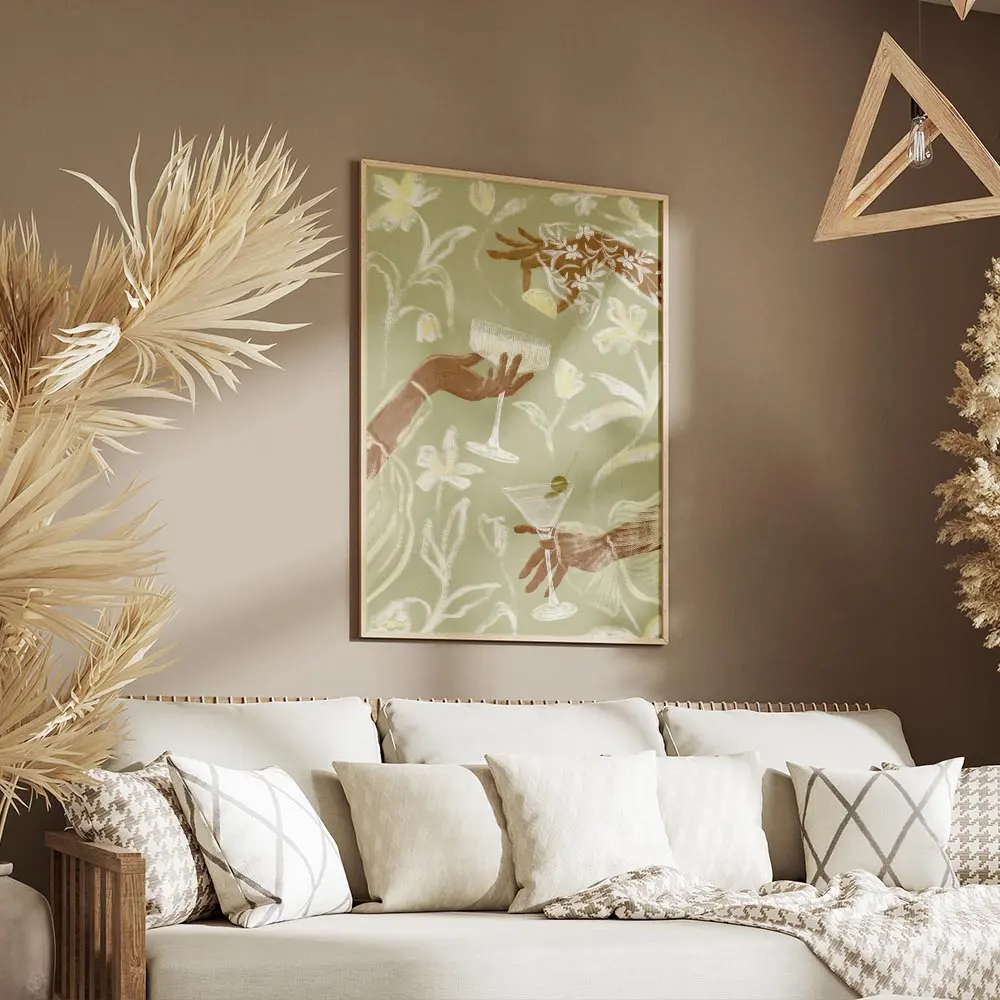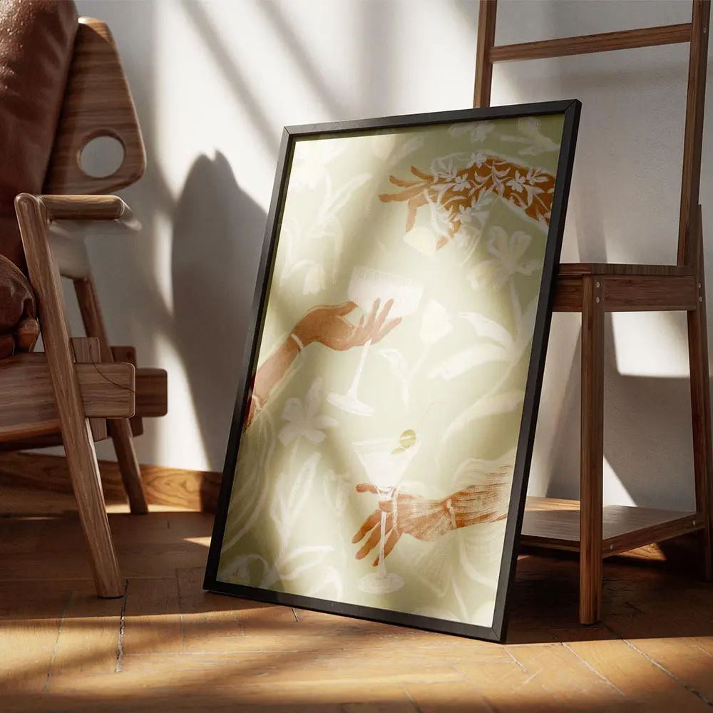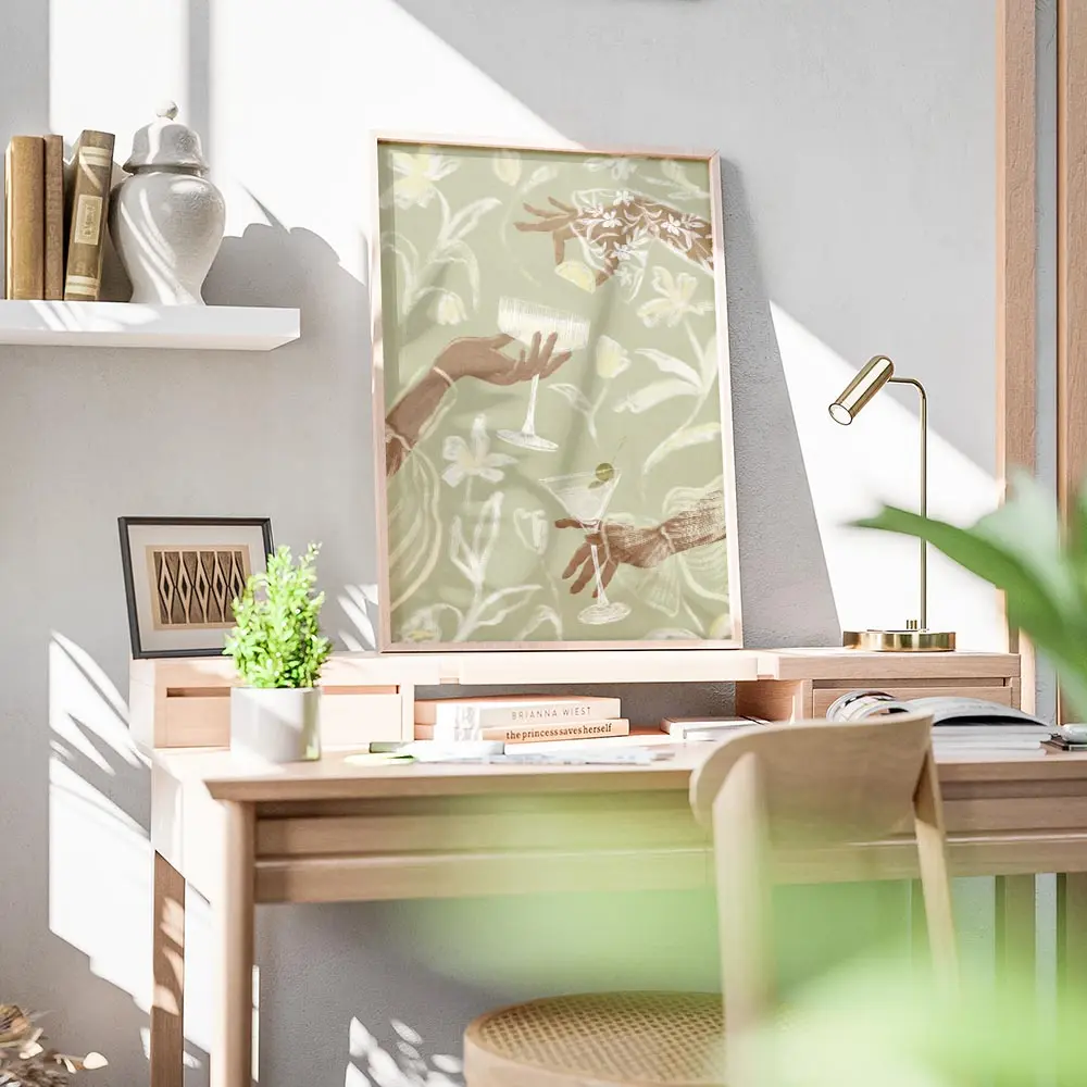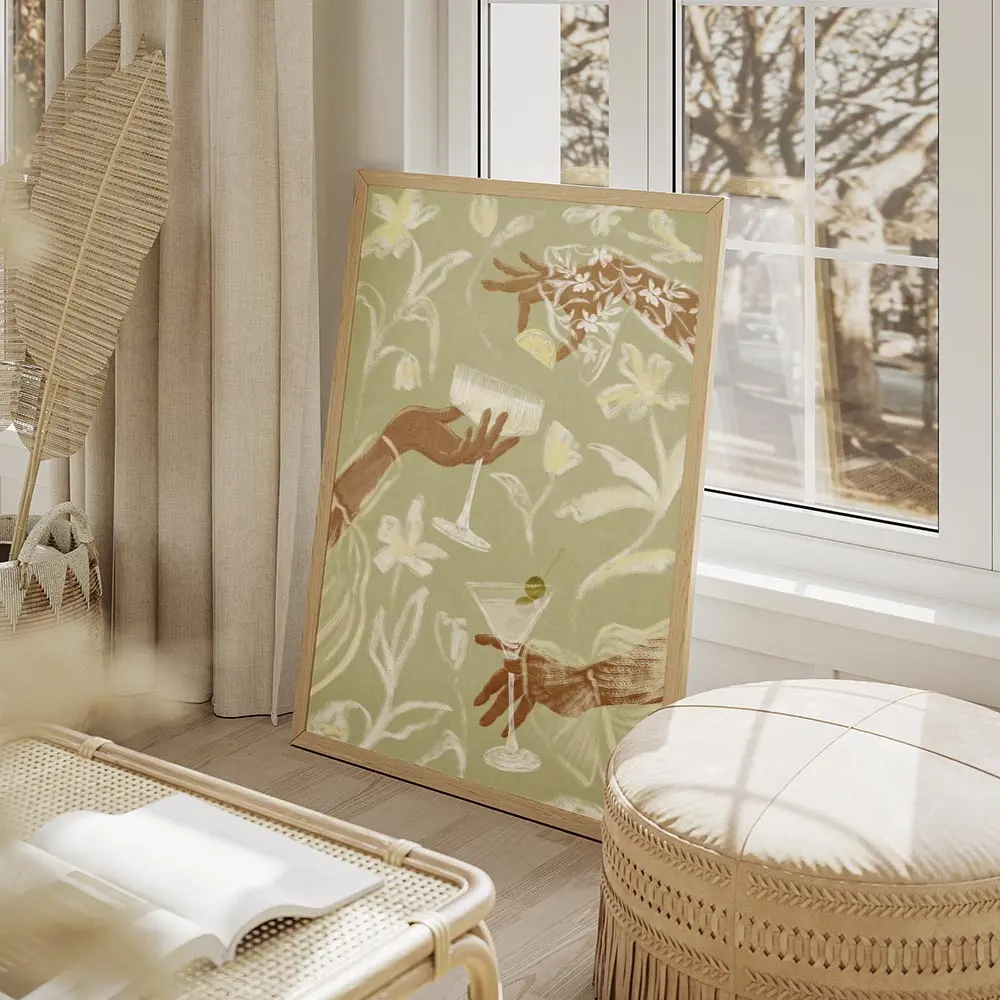 Ce poster fonctionne bien avec du bois clair, des vases en céramique et des textiles naturels. Pour les couleurs, rester sur des tons sable, blanc cassé ou vert sauge. Il ira bien dans une cuisine, un coin bar ou un salon douillet, et s’accordera facilement avec d’autres posters vins et cocktails ou des posters fleurs.